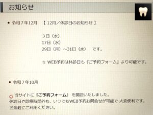R7. 12月 休診日のお知らせ